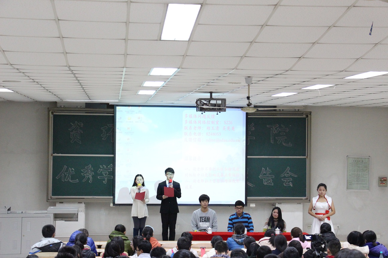 12月21日晚,资环学院优秀学子报告会在综合楼N304举办,团委李继发老师作为嘉宾出席。此次报告会由11级资环专业的王瑞瑞、环工专业的刘恩来和环科专业的宋凡浩同学代表发言。