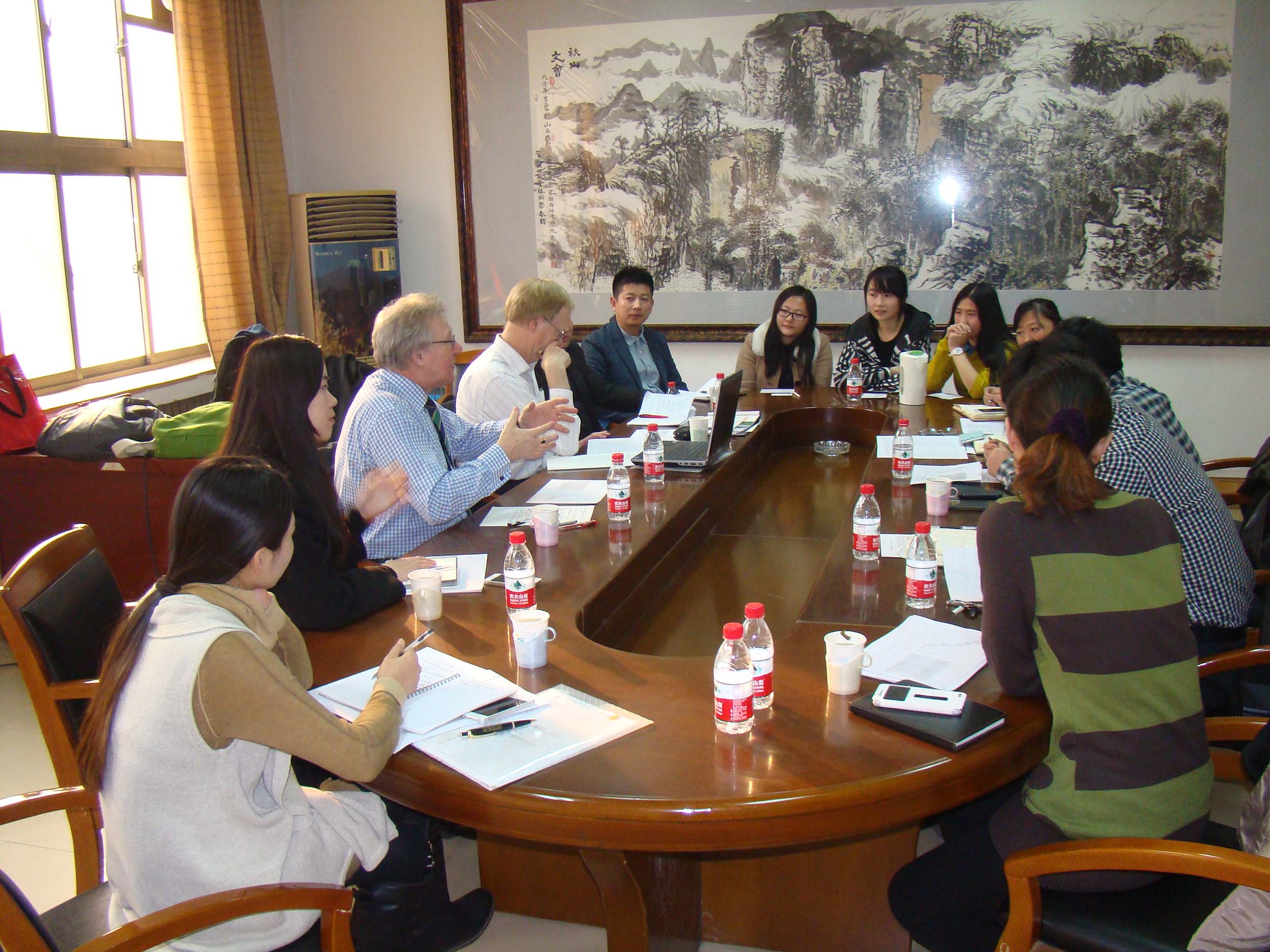 会议由赵庚星教授的主持,英方校长Davies首先发言,其对两校合作办学进展顺利表示祝贺并且盛情邀请中方合作伙伴到英国皇家农业大学进行访问。Davies校长还就英方教师授课过程中出现的问题、教学方式方法、辅导、教学资料等方面,认真听取了同学们的意见;同学们也就中英双方教学过程中自己的收获、出现的问题等进行了一一反馈。学院教学管理、学生管理人员就平时管理过程中出现的问题也与英方进行了交流。