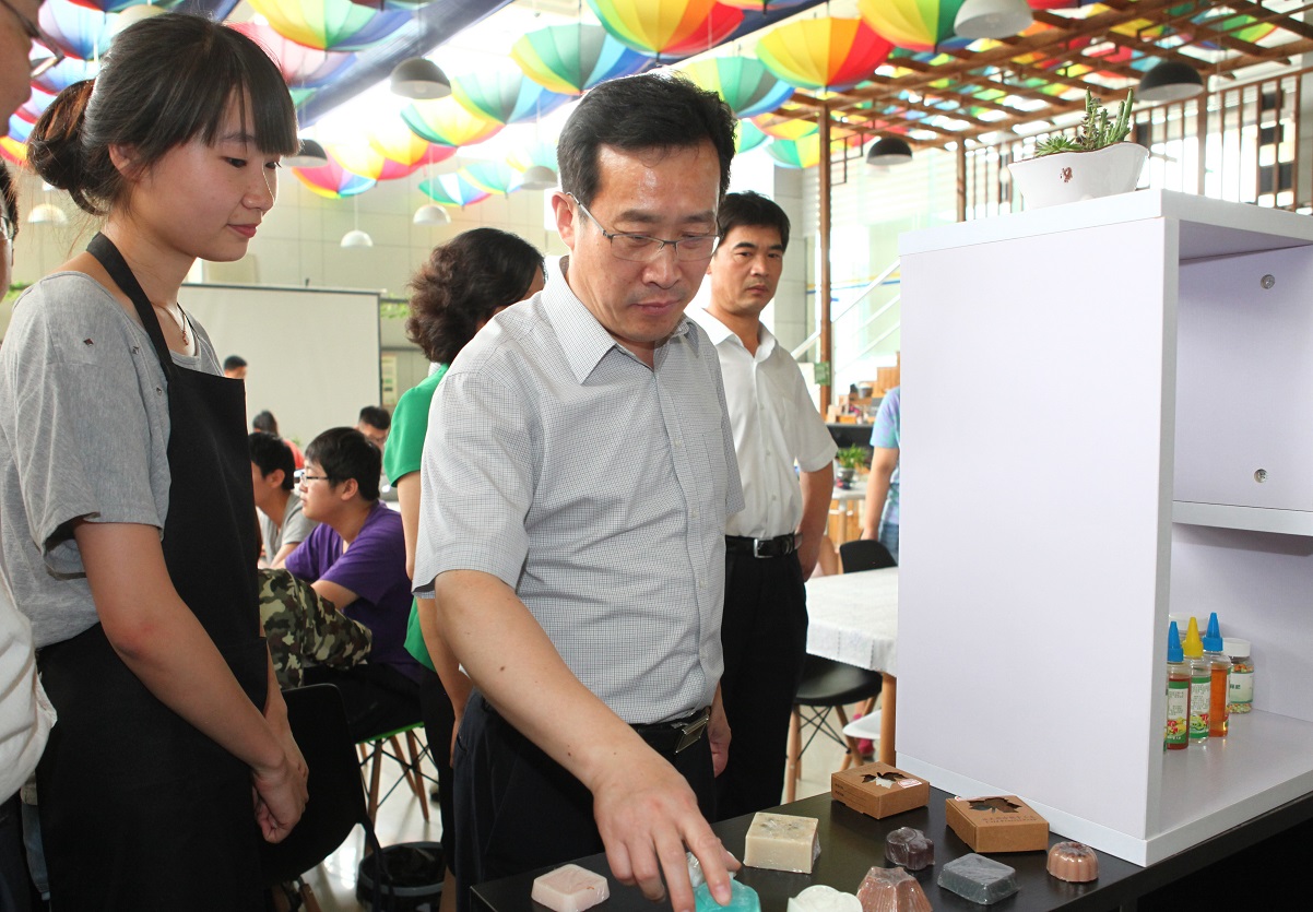 在“七色土”创客驿站,徐书记与学院创新创业团队负责人进行了深入交流。当了解到学院为促进大学生创新创业及就业工作,建立了创客驿站,为大学生提供激发创业灵感、开展校园文化活动、加强师生交流、实现资料共享以及促进学生创业就业实践的平台,前期已投入十万余元用于优化环境,购置图书与设备,目前已有9个创业团队入驻并有4个创业项目已经注册为创业实体,相关高校领导多次到创客驿站调研指导工作,已初步成为我校创新创业工作新的增长点和对外展示的新窗口的情况后,对学院在大学生创新创业工作中取得的成绩给予了肯定,徐书记详细询问了项目建设和运营过程中遇到的问题和困难,并品尝了由阅味书屋创业团队和Roverkids港式甜品创业团队所制作的饮品及甜点,气氛亲切融洽。徐书记在调研中指出:“国家高度重视大学生创新创业人才培养,这是大学生发挥创业才干的历史机遇。同学们要抓住时机,不畏困难,勇于创新,提升创业意识,磨炼创业技能,为日后走向社会,更好地就业创业打下坚实基础”并希望学院再接再厉,再创佳绩。