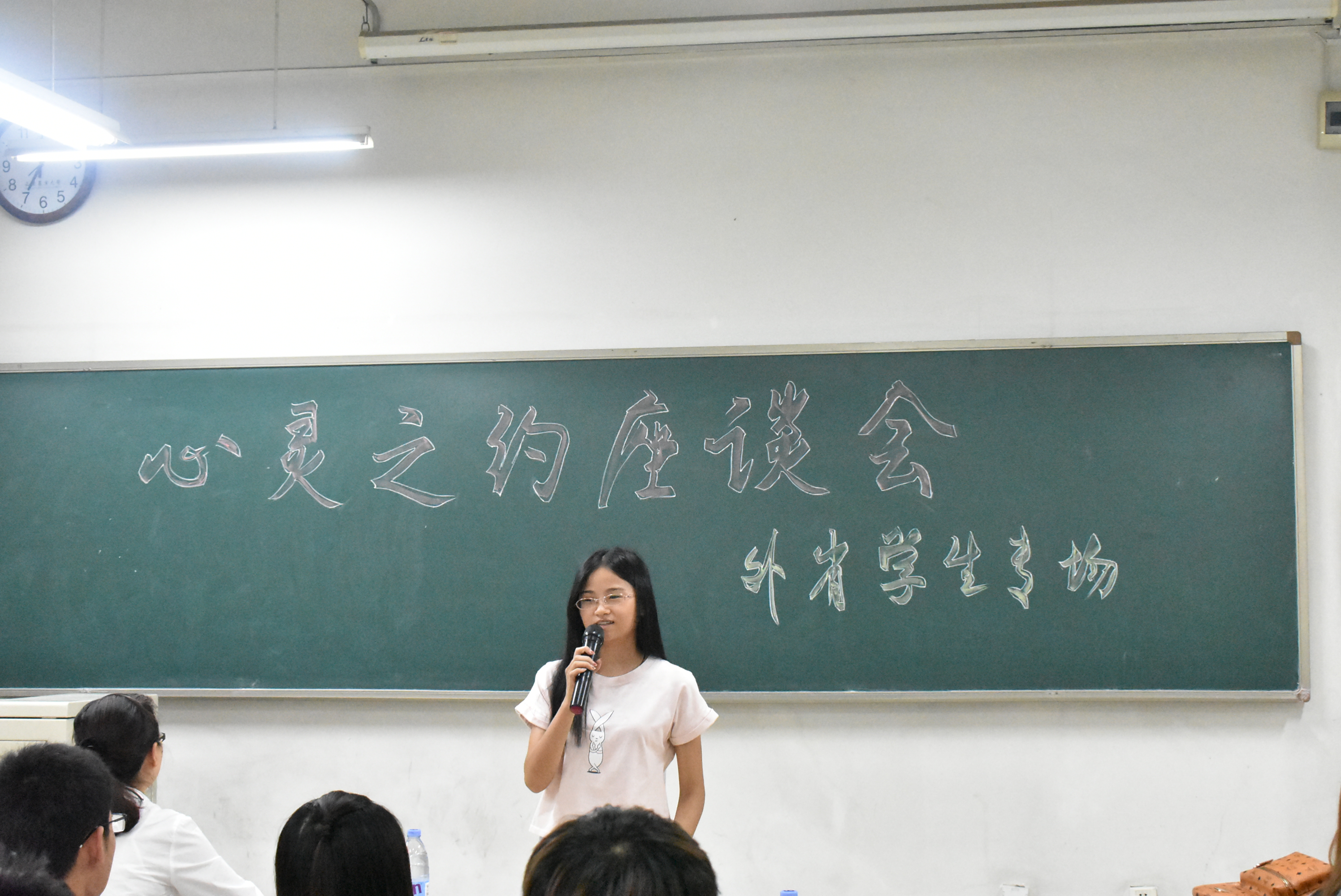 9月15日晚,资环学院于南校区综合楼s112教室举办外省家困生心灵之约座谈会,资环学院团委副书记王斐出席会议,学院2016级优秀学生代表,全体2017级外省家困生参加会议。