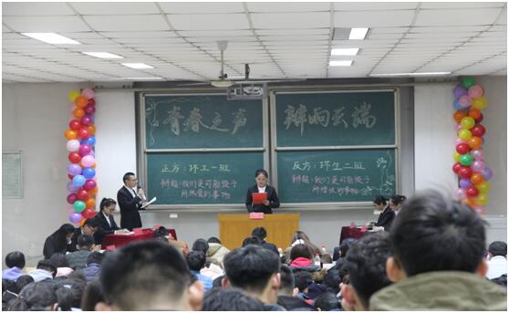 为了展示大学生的青春风采,繁荣校园文化,增进2017级新生之间的沟通与交流,资环学院于2017年11月27日晚上7点在南校区综合楼N201教室举办2017级新生辩论赛决赛,学院团委老师、学生会常委以及2017级新生代表300余人观看了此次比赛。