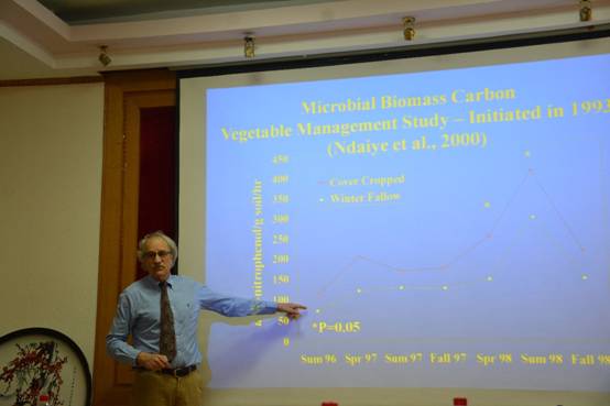 3月30日,著名土壤学专家、美国俄亥俄州立大学Richard P. Dick教授应邀访问了我校资环学院及土肥资源高效利用国家工程实验室,并以“土壤健康”和“撰写高影响力期刊文章”为主题,为师生做了两场精彩的学术报告。学院领导、专家教授和部分师生参加了交流活动。
