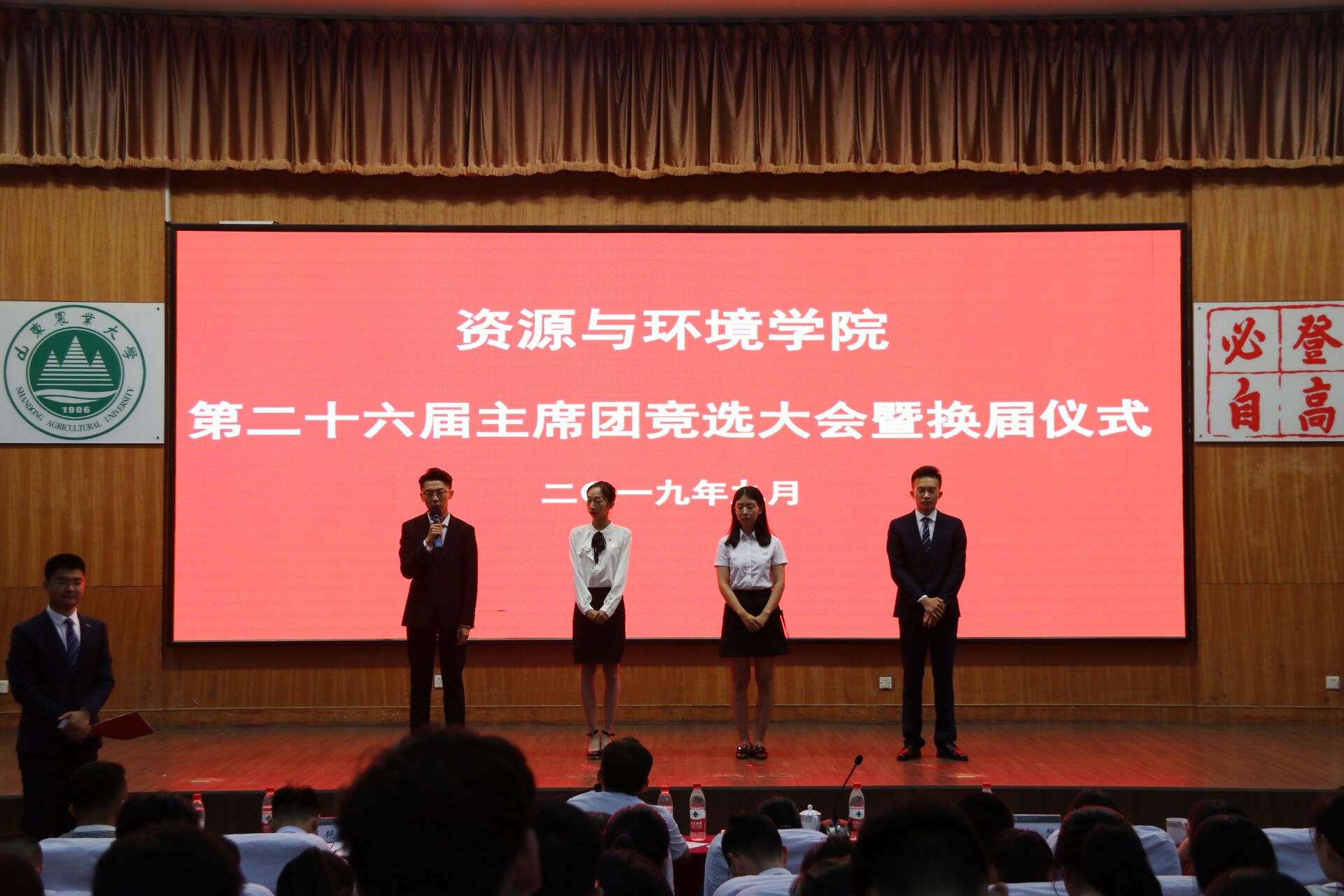 为学生会更好服务师生,做好新老学生干部传承工作,为学生会后续发展注入更多新鲜血液,9月10日,资环学院于南校区第一学术报告厅举办第二十六届主席团竞选暨换届大会。资环学院党委副书记薛松、团委书记刘敏,团委辅导员李娜、王亚南、刘然、王艳廷、兼职辅导员候善民、学生会成员及各班级代表出席此次大会。学生会主席马希贤主持此次会议。