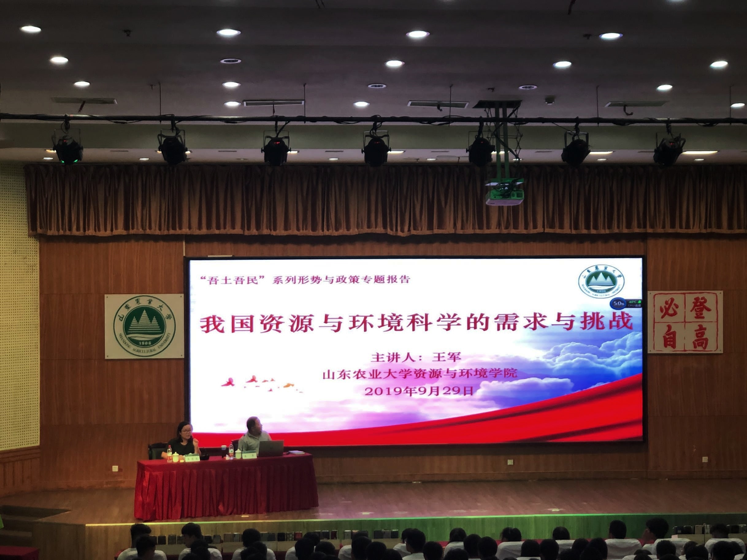 为深入学习习近平总书记在对全国涉农高校回信中的精神,贯彻三农思想和治国理政新思想、新要求,9月29日,资环学院于南校区第一学术报告厅举办“吾土吾民”形式政策专题报告会暨2019级学生安全大会,会议邀请环境与工程学科教授王军主讲,团委副书记王亚南主持,全体2019级新生参加。
