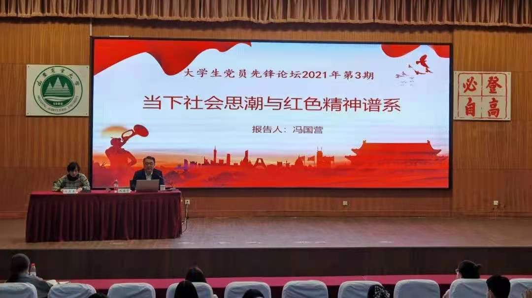 为扎实有效推进学院意识形态阵地建设,发挥我院学生党员的引领示范作用,4月13日,由学工处主办,资环学院承办的2021年第3期大学生党员先锋论坛——“当下社会思潮与红色精神谱系”在南校区报告厅顺利举办。本次活动由学院团委书记刘真真主持,学院党委书记冯国营担任主讲人,学院全体辅导员,学生党员、积极分子以及各年级学生骨干参加活动。