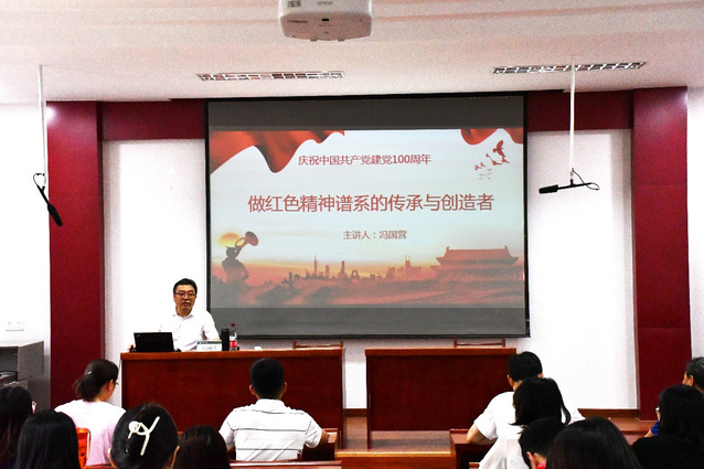 6月25日,学院党委书记冯国营以《做红色精神谱系的传承与创造者》为主题,为党员干部和青年学生上党课。冯国营所在的行政实验室支部党员,学院研究生党员和和新发展的党员参加党课学习。