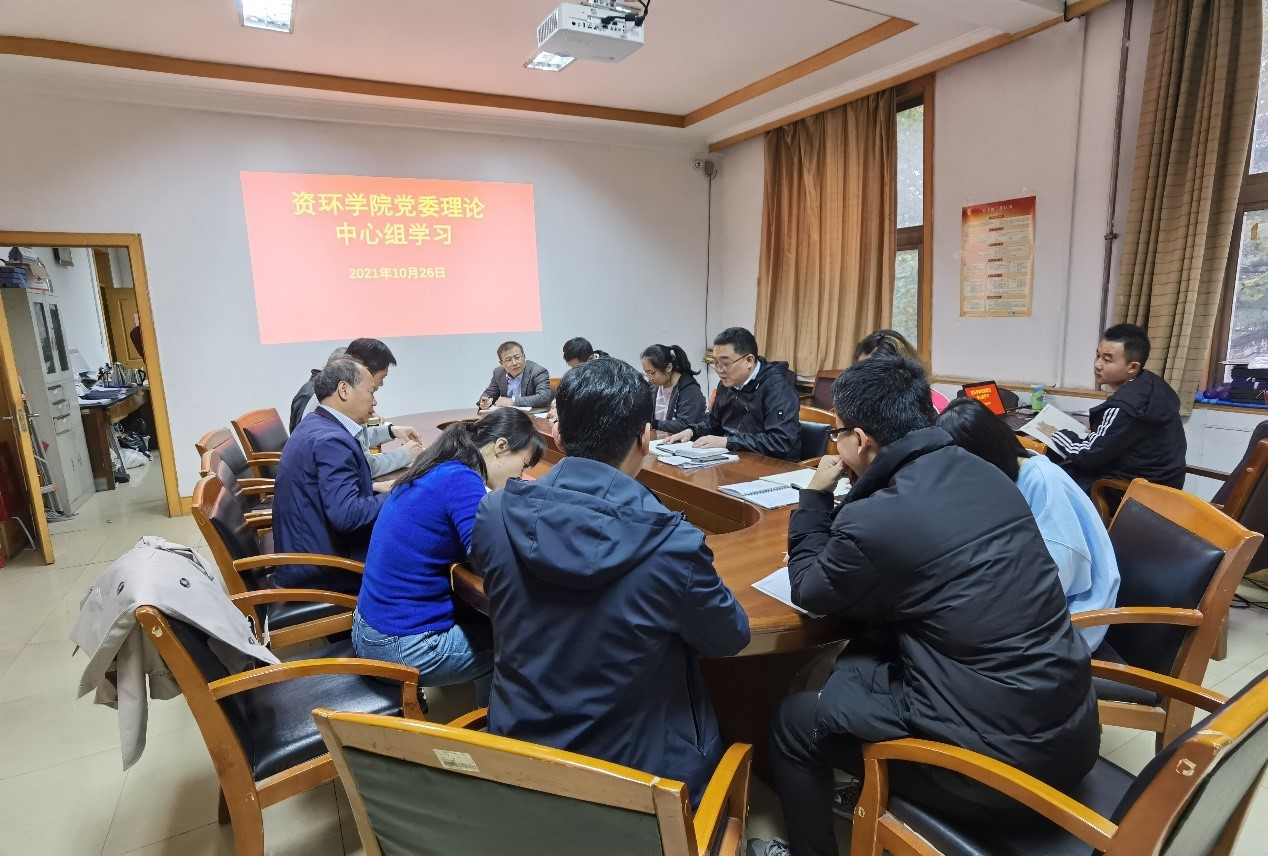 10月26日,资源与环境学院在学院会议室召开党委中心组2021年第十五次学习会议。党委书记冯国营主持会议,学院党政领导班子、党委委员和各党支部书记参加会议。