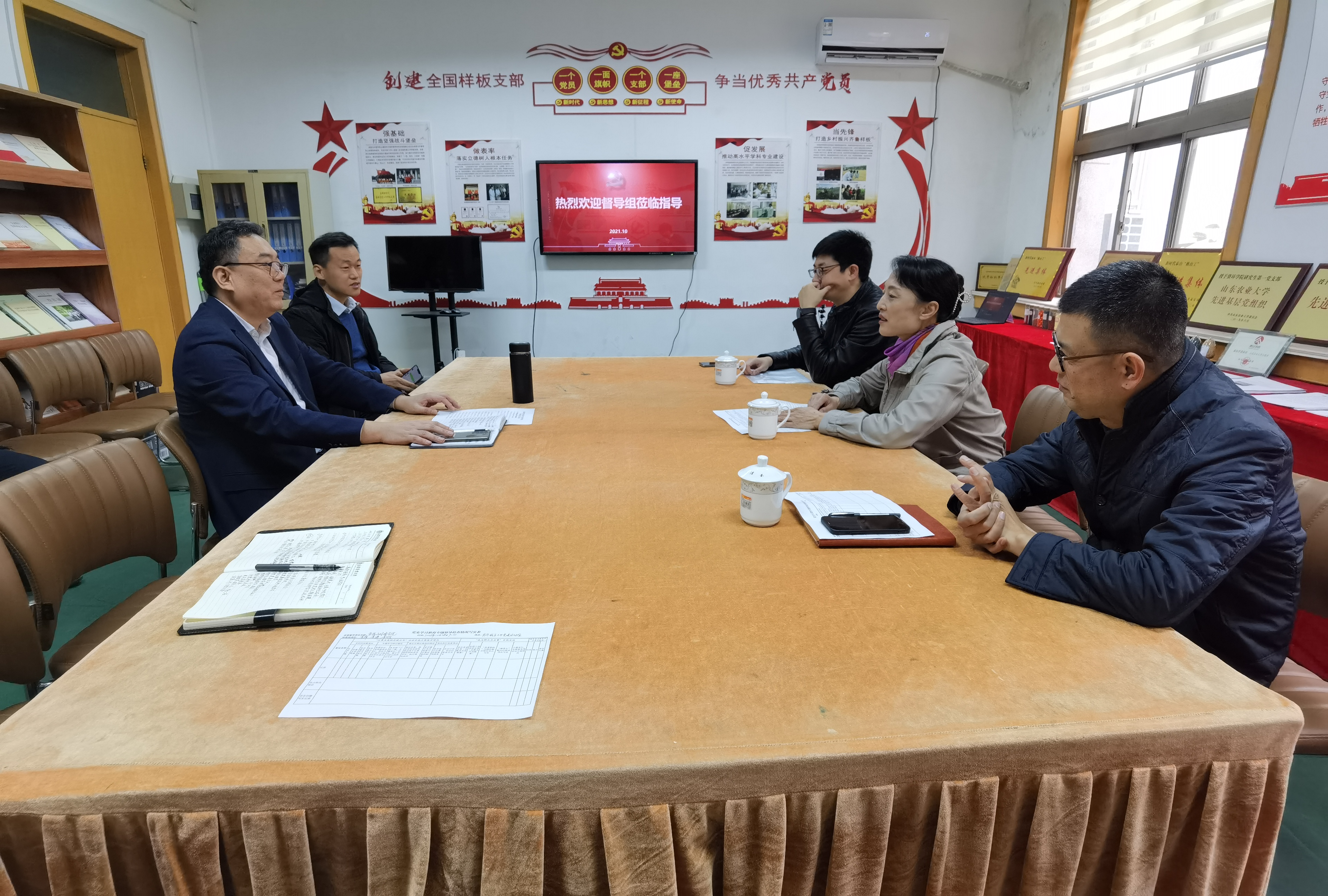 10月28号上午,为深入学习贯彻习近平总书记在庆祝建党100周年大会上重要讲话精神,学校党史学习教育专题督导组工作人员李萍、李涛、李万佳莅临资源与环境学院指导检查,党委书记冯国营、党委副书记薛松以及相关老师参加。