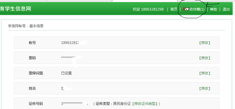 学生再登陆,则可看到本人信息。